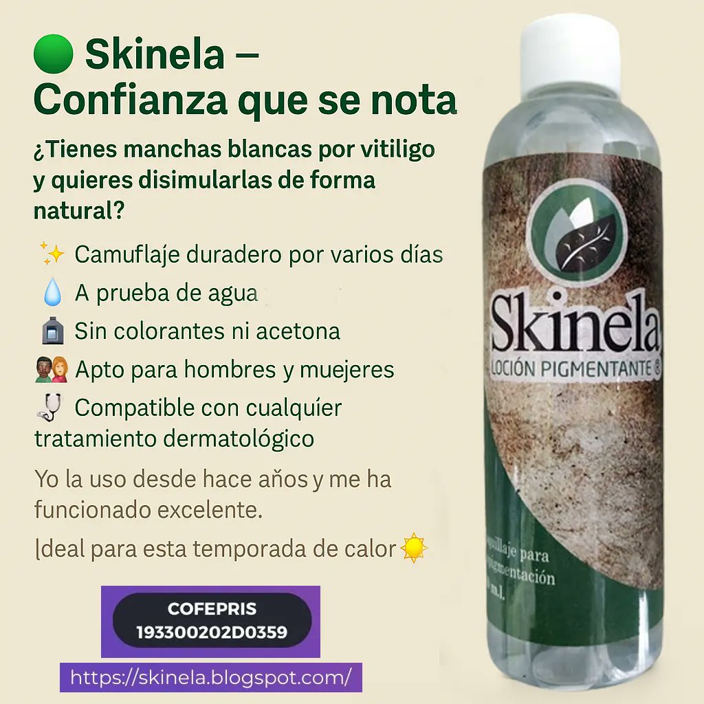 Loción Pigmentante para Vitiligo: Duradera y Segura ¿Te gustaría ocultar las manchas del vitiligo de forma natural y duradera? Skinela es la solución perfecta. Descubre más aquí: 🔗 bit.ly/32465kD #vitiligo #skinela #vitiligomexico #vitiligoawareness #curavitiligo