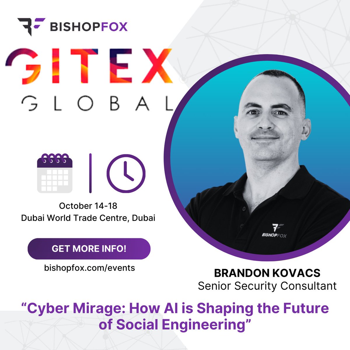 GITEX Global kicks off Monday! ✈️ @brandonkovacs will present “Cyber Mirage: How AI is Shaping the Future of Social Engineering” – covering real-time #deepfakes and #voicecloning! Learn how these #AI tools are being used in #socialengineering attacks. #cybersecurity #GITEX