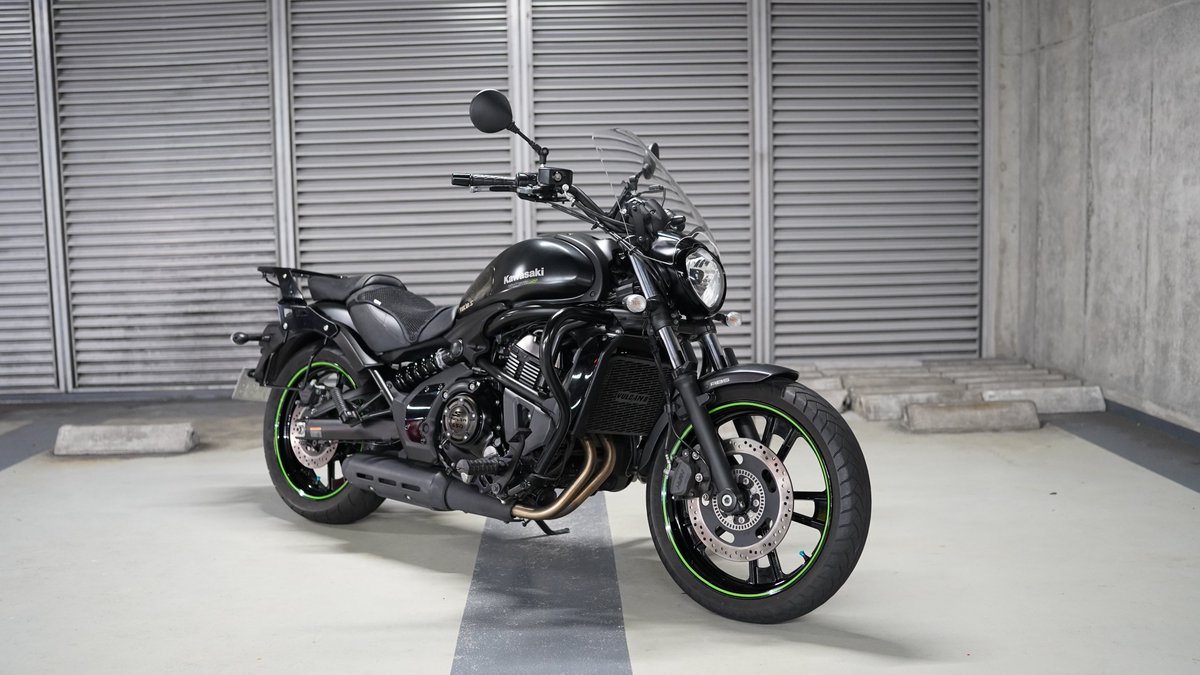 #あなたが愛車を選んだ理由を三つ教えて 足つき最高 リターンライダーにこれ大事 跨ってみて これならいける と思った 650cc2気筒の 適度なパワー 速すぎず 遅すぎない 黒/グレーに緑のストライプ このカラーに 今のカワサキを感じた #VulcanS #バルカンS #リターンライダー
