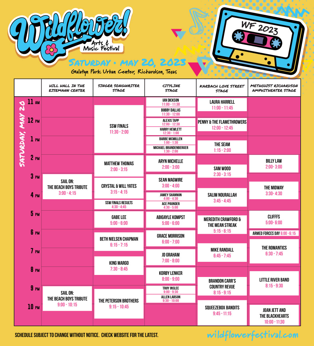 Coming up on SAT 5/19 is Little River Band at 8:15PM on the Methodist Richardson Amphitheater Stage and then Joan Jett and The Blackhearts at 10PM. We're just getting started so make plans to attend #WAMFEST23 in Richardson. wildflowerfestival.com
