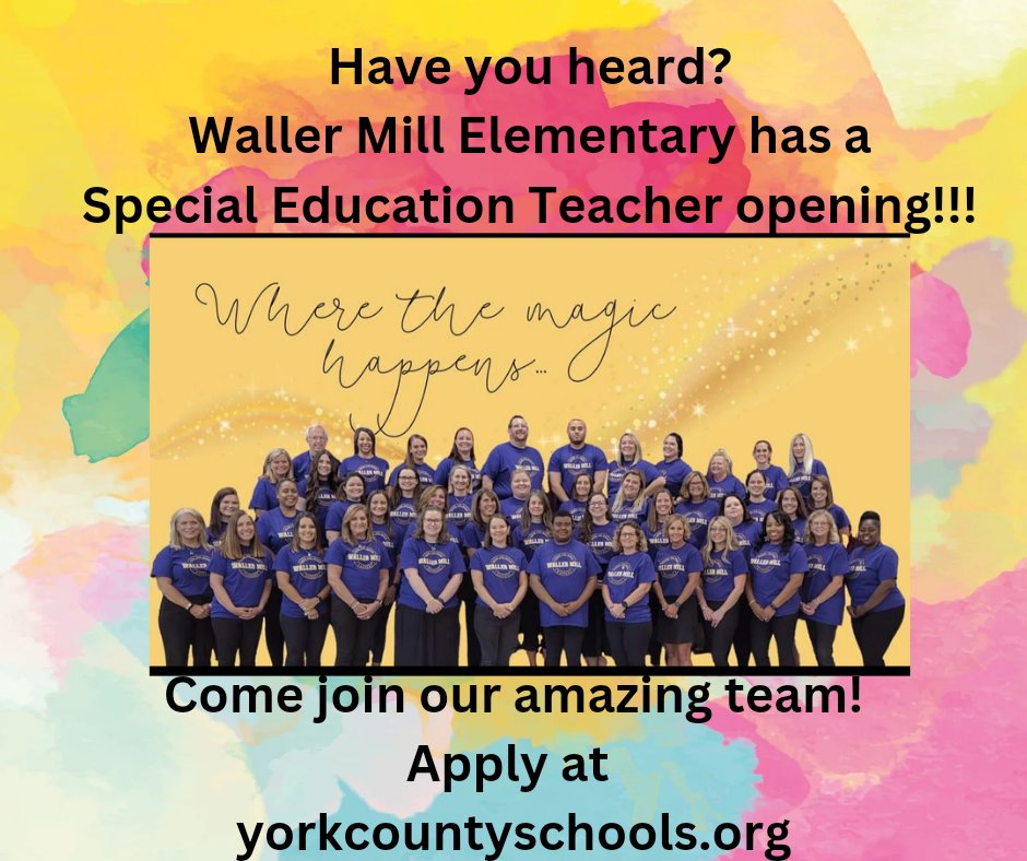Hey you, yes you! Come work with the amazing #WMES team! @YCSD and @WallerMillES have so much to offer!