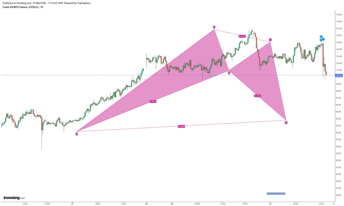 #WTI #CRUDEOIL 原油1時間足、次々に入ってくるエスカレーションの情報を確認してロングすることにしました。 アセンディングトライアングルのABCDEを通過しブレイクアウトが確認できれば、123~128ドルまで急伸すると思います。 もうトランプの茶番は通用しないでしょう。