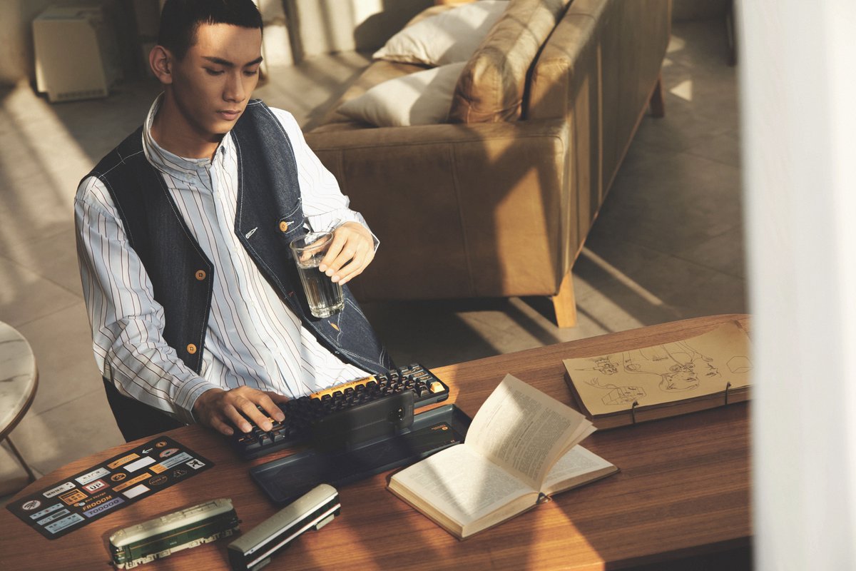 The inside of the top cover comes with a multi-function bracket, where you can place your phone and type directly with the WANDERFREE keyboard. 🔥 bit.ly/LofreeKickStar… 🔥 #Lofree #Kickstarter #WanderFree #MechanicalKeyboard