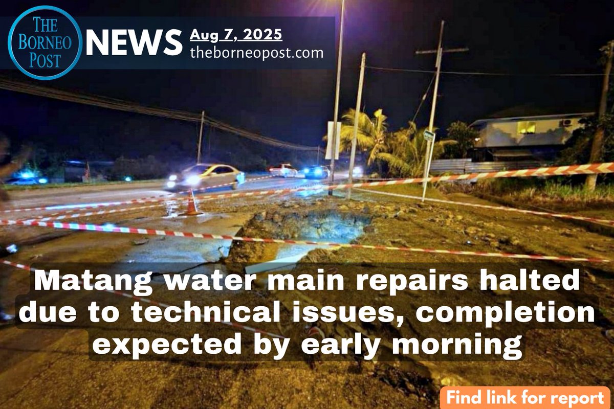 Matang water main repairs halted due to technical issues. Second burst near Emart Moyan also under repair. Expect water disruptions in Matang–Batu Kawa areas till early morning. theborneopost.com/2025/08/07/mat… #Matang #WaterDisruption #SarawakWater