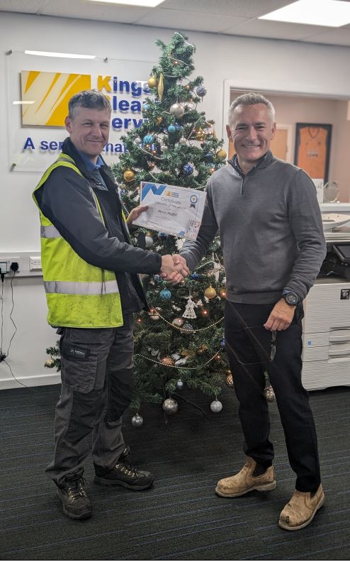 Barry receiving his Certificate from our MD Sean Carrison. having only been with us a short period Barry has proven to be an essential member of the KCS team. Well done from us all here at KCS. #Newmember #welldone #wecleanyoushine #gobarry #xmas #kcs01482648737