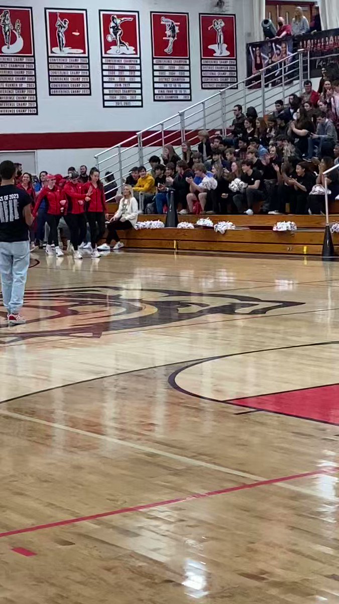 Girls swim team representing at the pep assembly, I love how they go all out wearing their caps and goggles. #swimfamily #wehavefun