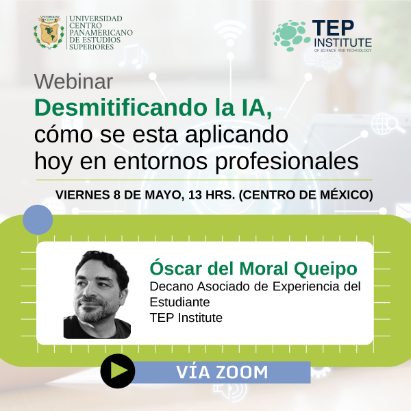 ¿La #IA es una promesa del futuro o una herramienta del presente? Descubre cómo aplicarla HOY en entornos profesionales en nuestro próximo #Webinar con UNICEPES y TEP Institute. Ponente: Óscar del Moral Queipo | 8 de mayo | 13:00 hrs (CDMX) | Regístrate link.unicepes.edu.mx/v115