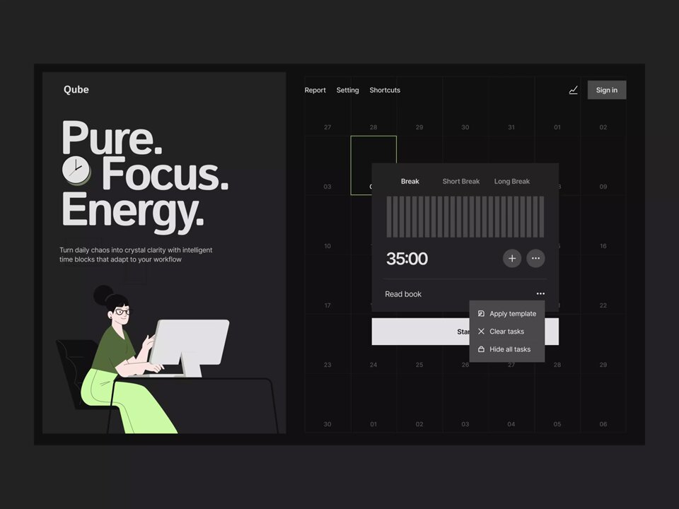 Qube is a task and productivity platform designed to help users organize their day with structured time blocks. Tap the link to explore more: dribbble.com/shots/26559171… #WebDesign #WebsiteDesign #WebMotion #WebUI #WebInteraction #WebAnimation