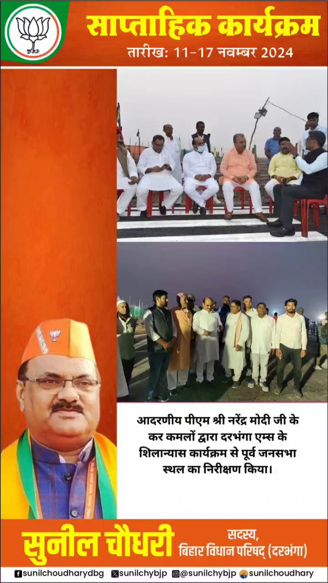 पिछले सप्ताह दरभंगा एम्स शिलान्यास, जनसुनवाई, जनसभा, सभा स्थल निरीक्षण व अन्य सार्वजनिक कार्यक्रमों में सहभागिता की। #WeeklyPrograms #BJP #BJP4INDIA #BJP4Darbhanga #BJP4Bihar