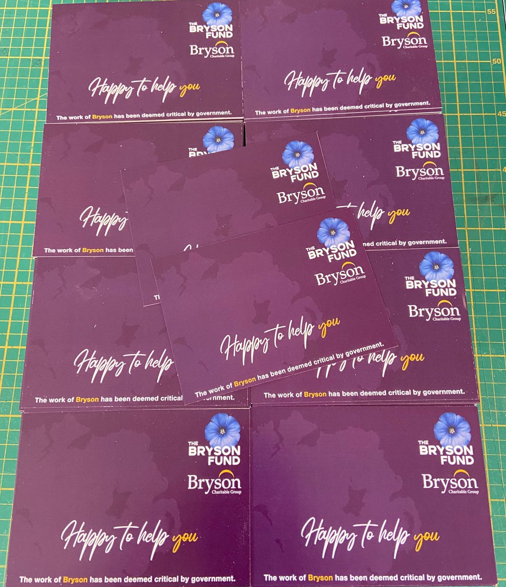 A6 cards printed for the Bryson Charitable Group. Get in touch on 028 9002 2474 or kaizenprint.co.uk #a6 cards #whatsprinting