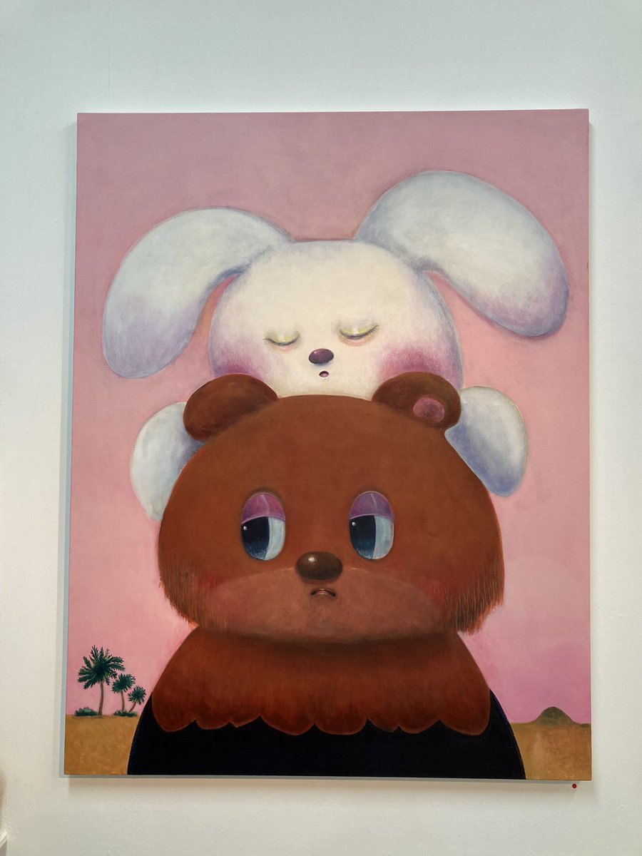 #wishless オモチャを包む包装紙を思わせる作品で、メタルのジャケットにいる有名なキャラクターたちがアニメチックに描かれている楽しさと本来のグロさがソフトになっててなんかハッピーな気分になりました。あいつも!こいつもいる!みんな笑ってる!最高!みたいな。 至福の展示でした!