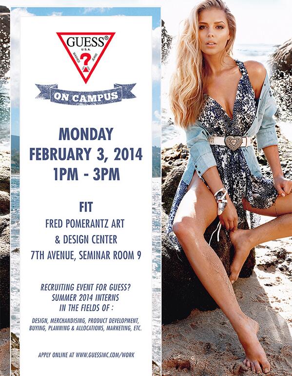 Hey NYC! Stop by the GUESS on Campus event at FIT on 2/3 to speak with us about our Summer 14 Programs! #WorkForGUESS