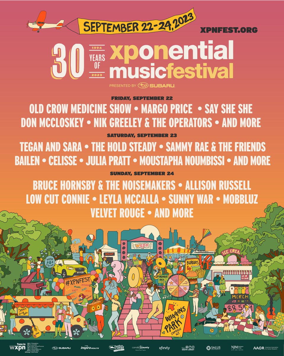⚠️ ANNOUNCEMENT TIME! ⚠️ The 30th XPoNential Music Festival stars Old @crowmedicine Show, @teganandsara, @theholdsteady, @MissMargoPrice and more, and takes place entirely at Wiggins Park this September. See you at #XPNFest! xpn.org/2023/04/18/xpo…