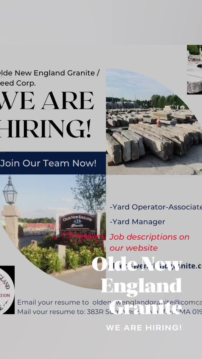 Yes, we are hiring for a Yard Operator-Associate & Yard Manager. Here is more information about both jobs: oldenewenglandgranite.com/job-opening-ya… Think you’re a good fit? We’d love to hear from you! Email your resume to: [email protected] #jobposting #Yardoperator