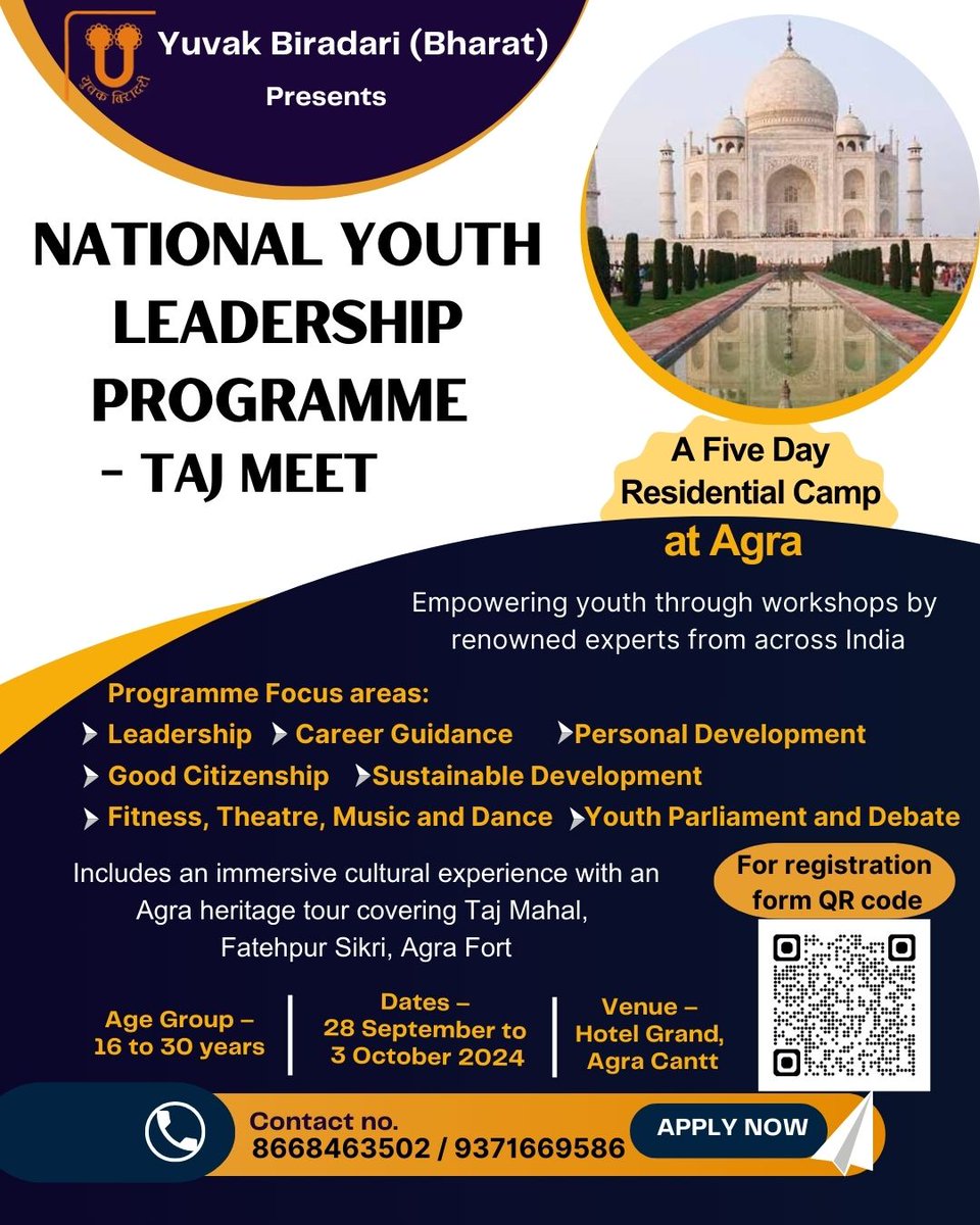Registration open for an immersive, engaging, holistic learning opportunity to support your leadership and career goals. See you at Agra! Brought to you by @YuvakBiradari #YouthLeadership #YouthPlatform #YouthMovement #YouthCamp #YuvakBiradari@50 #GoldenJubilee