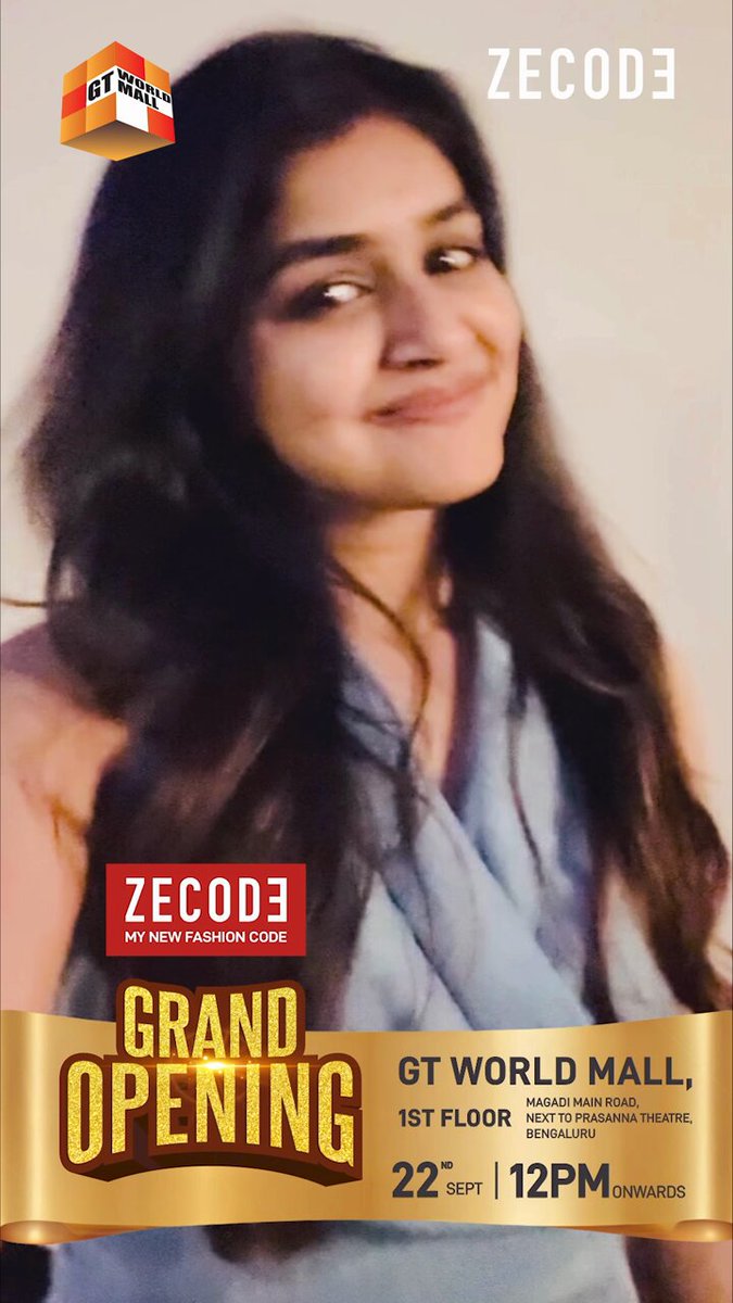 ✨ Unveiling my new look at ZECODE Grand Opening on 22nd! ✨ Fashion, fun & smiles await at GT World Mall 🛍️🍴🎉 With Chief Guest Sangana Anand – don’t miss it! 📍 Magadi Main Road, Bengaluru #ZECODE #FashionLaunch #GTWorldMall #ShopDineCelebrate