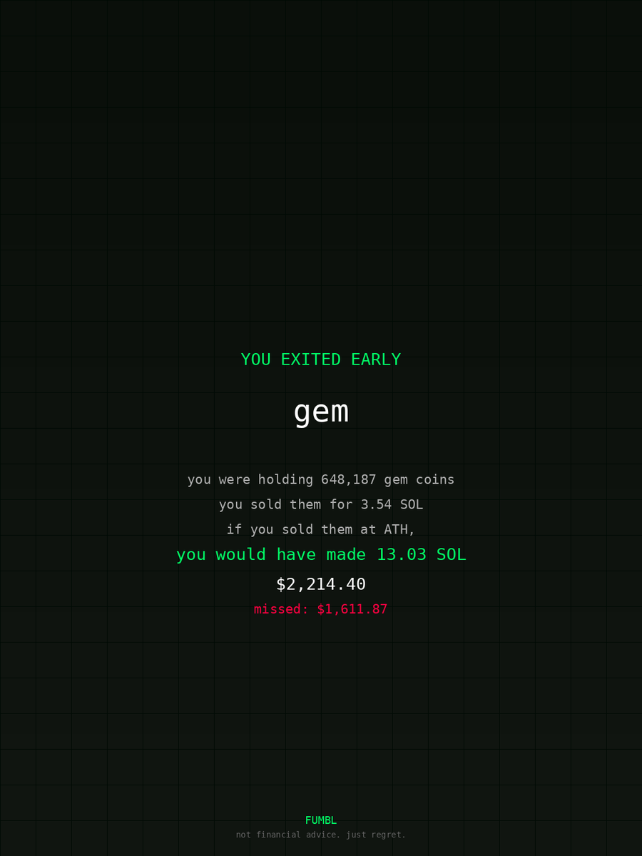 used fumbledbags.com to see how much i missed out on $gem bro actually gonna crash out 4aeQimr2iWTizCVVCfct79AxjuPAyyjY9ZPVjVxUodny #rabby #advance