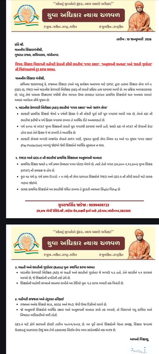 શિક્ષણ વિભાગની વહીવટી કેડરની સીધી ભરતીમાં ‘પગાર રક્ષણ’, ‘અનુભવની માન્યતા’ અને ‘ભરતી ગુણોત્તર’ ની વિસંગતતાઓ દૂર કરવા બાબત.👇🏻 📌રાજ્યના શિક્ષણ તંત્રને વધુ કાર્યક્ષમ બનાવવા માટે GPSC દ્વારા હાલમાં શિક્ષણ સેવા વર્ગ-૨ (#GES-II), TPEO અને મદદનીશ કેળવણી નિરીક્ષક (#AEI) ની ભરતી