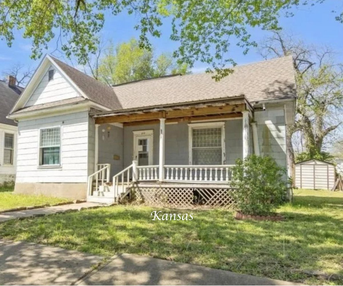 $49,000. 3-bedroom, 1-bath #affordable #Kansas #home with original woodwork, garage and unfinished basement. oldhousesunder50k.com/c-1929-afforda…