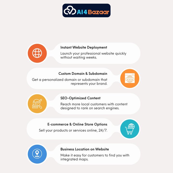 Whether you're a shop owner, service provider, or running a home business—getting online is a necessity. And we at #AI4Bazaar make it simple. We handle everything from launching your website to setting up your Google profile, integrating WhatsApp, & even helping you sell online