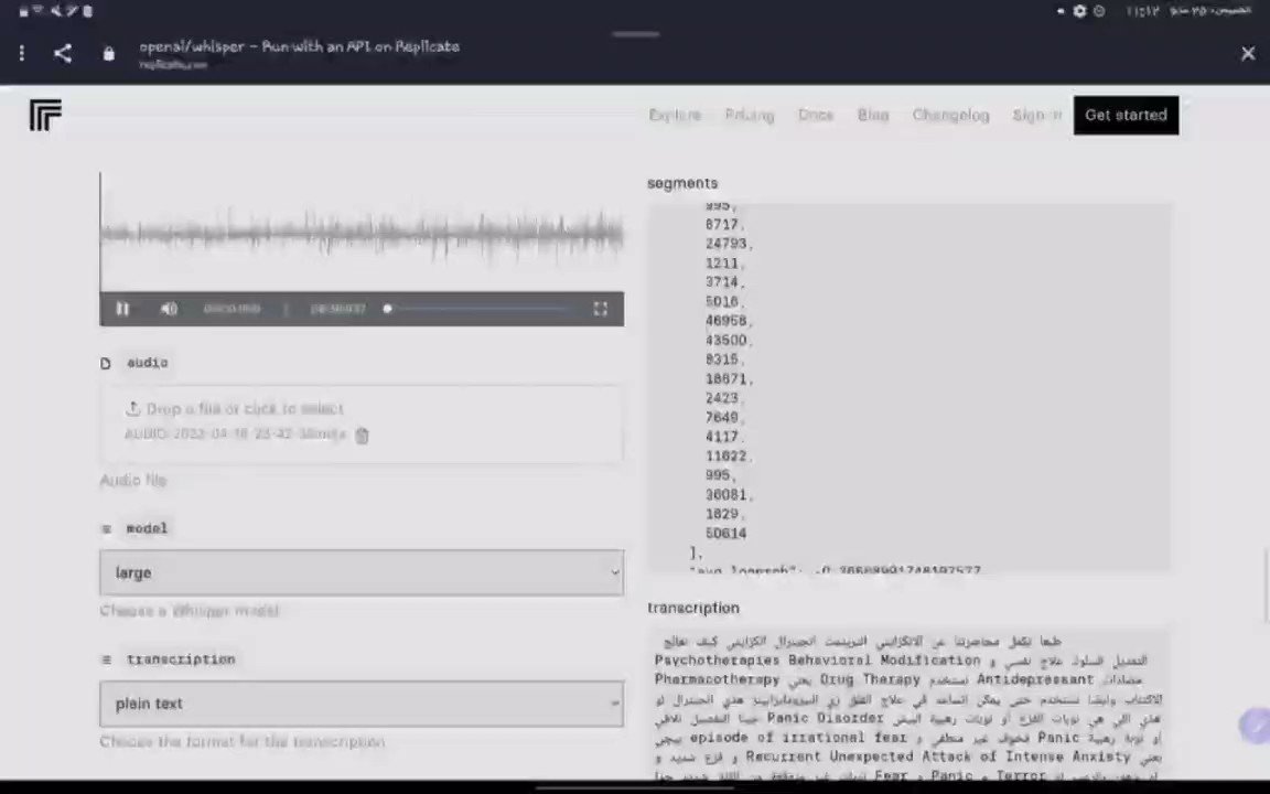 AI TOOLS HAVE BLOWN MY MIND ONCE AGAIN!! لقيت وأخيرا #AI_Tool اتحول التسجيلات لكتيبة دقتها 99% شوفوا الفيديو #open_AI replicate.com/openai/whisper
