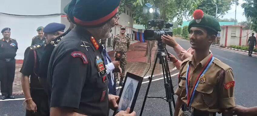 Congratulations to #AITSC Silver medalist CSM Hrithik Dinesh of #31KeralaBattalion on his outstanding achievement! A proud moment as he personally presents a self-made portrait to Lt Gen Gurbirpal Singh, PVSM, AVSM, VSM, DG NCC. A true reflection of his talent and dedication
