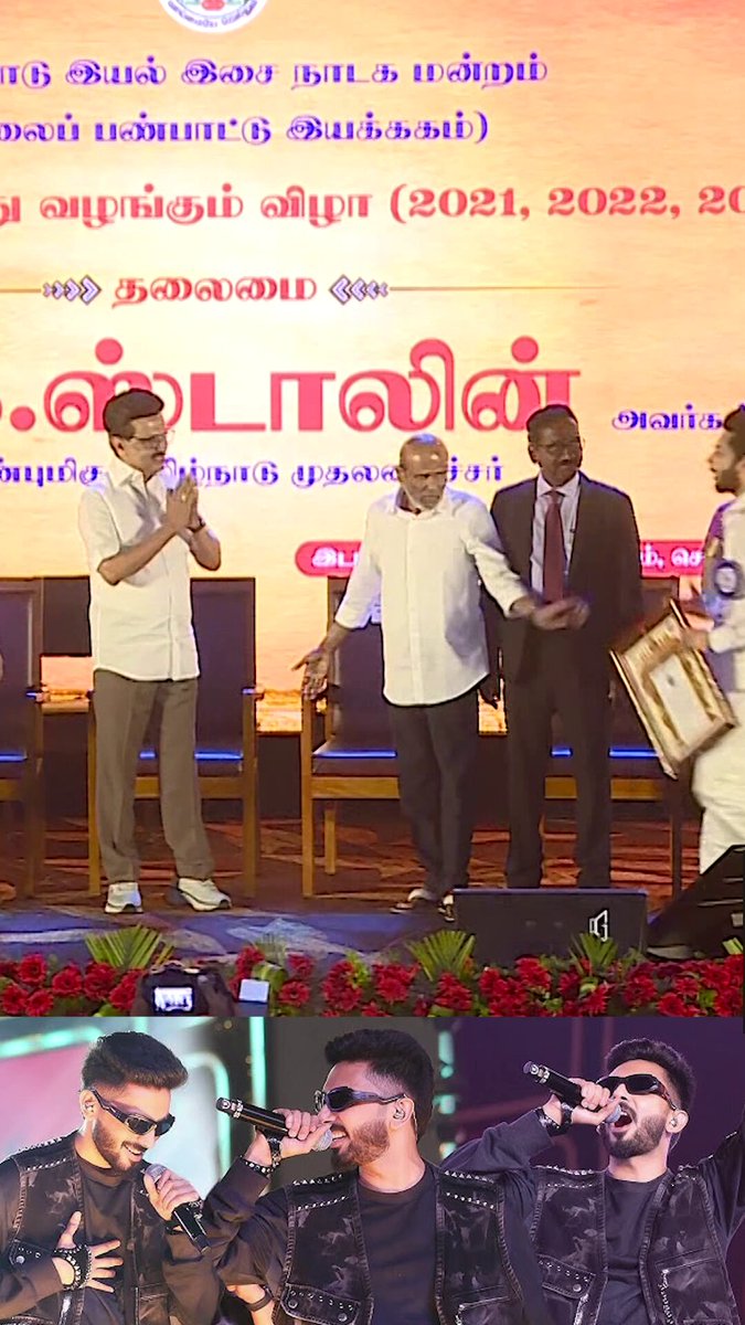 #Anirudh, #SaiPallavi, #VikramPrabhu, #SjSuryah and other receive their #KalaimamaniAwards from TN Chief Minister #MKStalin at the awards ceremony at Kalaivanar Arangam!