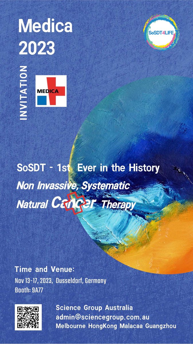 Visit us at #MEDICA2023 in Düsseldorf, Germany, from November 13th to 17th to witness a medical revolution! @SoSDT4Life is proud to unveil its groundbreaking #SoSDT #anticancertechnology for the first time in history.Visit Booth #9A77 at Messe Düsseldorf. cancertherapies.cc/sosdt4life-pio…
