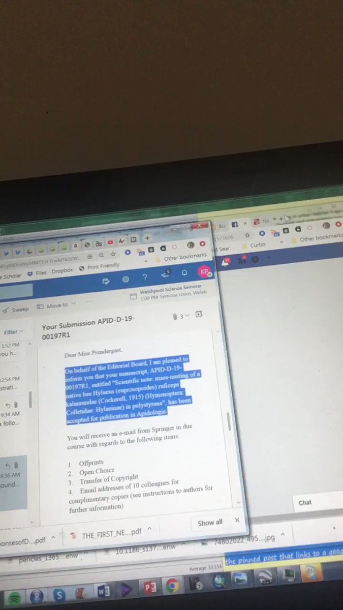 Woot #article accepted in Apidology! #apidology #hylaeus #plastics #publication #happydance #phdlife #bees #womeninSTEM