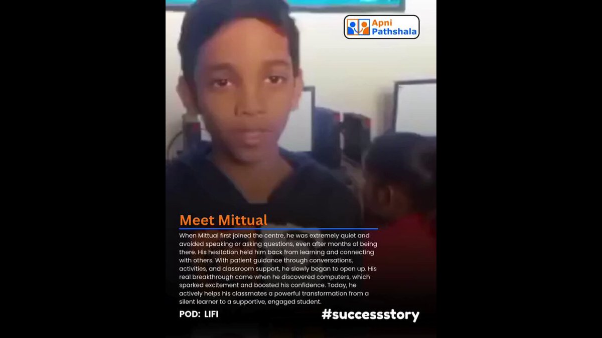 From silent and hesitant to confident Mittual’s journey shows what patient guidance and the right environment can do. His breakthrough came when he discovered computers, and today he actively helps his classmates. apnipathshala.org #SuccessStory #ApniPathshala…
