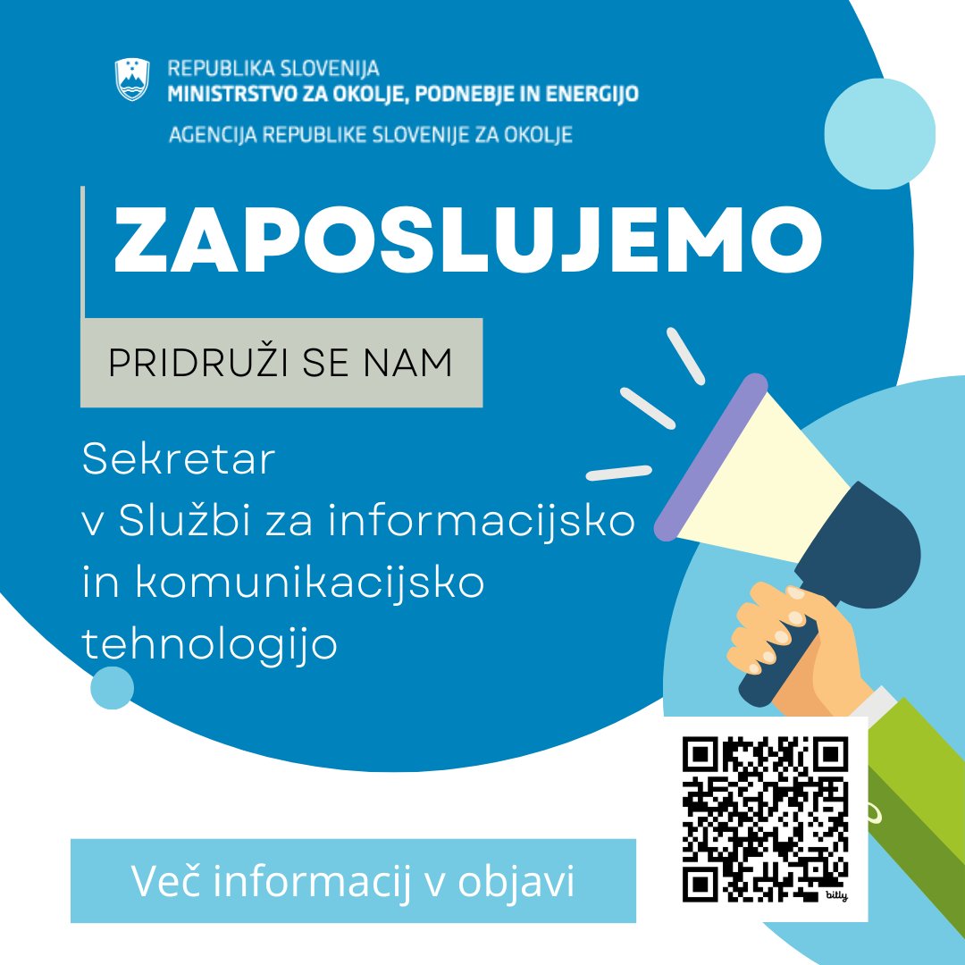 𝗭𝗮𝗽𝗼𝘀𝗹𝘂𝗷𝗲𝗺𝗼 📢 Iščemo nove člane naše IT ekipe! 🖥 Iščemo sodelavca za področje: ▪ informacijske in komunikacijske tehnologije Več na: 🔗 bit.ly/3XdIKuX #delovnomesto #arso #sikt #it