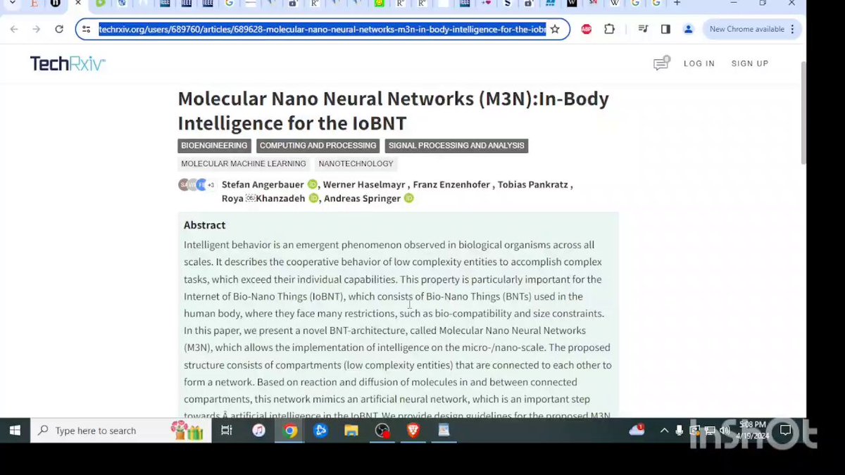 Molecular Nano Neural Networks (M3N):In-Body Intelligence for the IoBNT #NanoCyberInterface #PANACEA #InternetofBioNanoThings #MolecularMachineLearning #NeuralEngineering Angerbauer techrxiv.org/users/689760/a… Novel Nano-Scale Computing Unit for the IoBNT researchgate.net/publication/37…