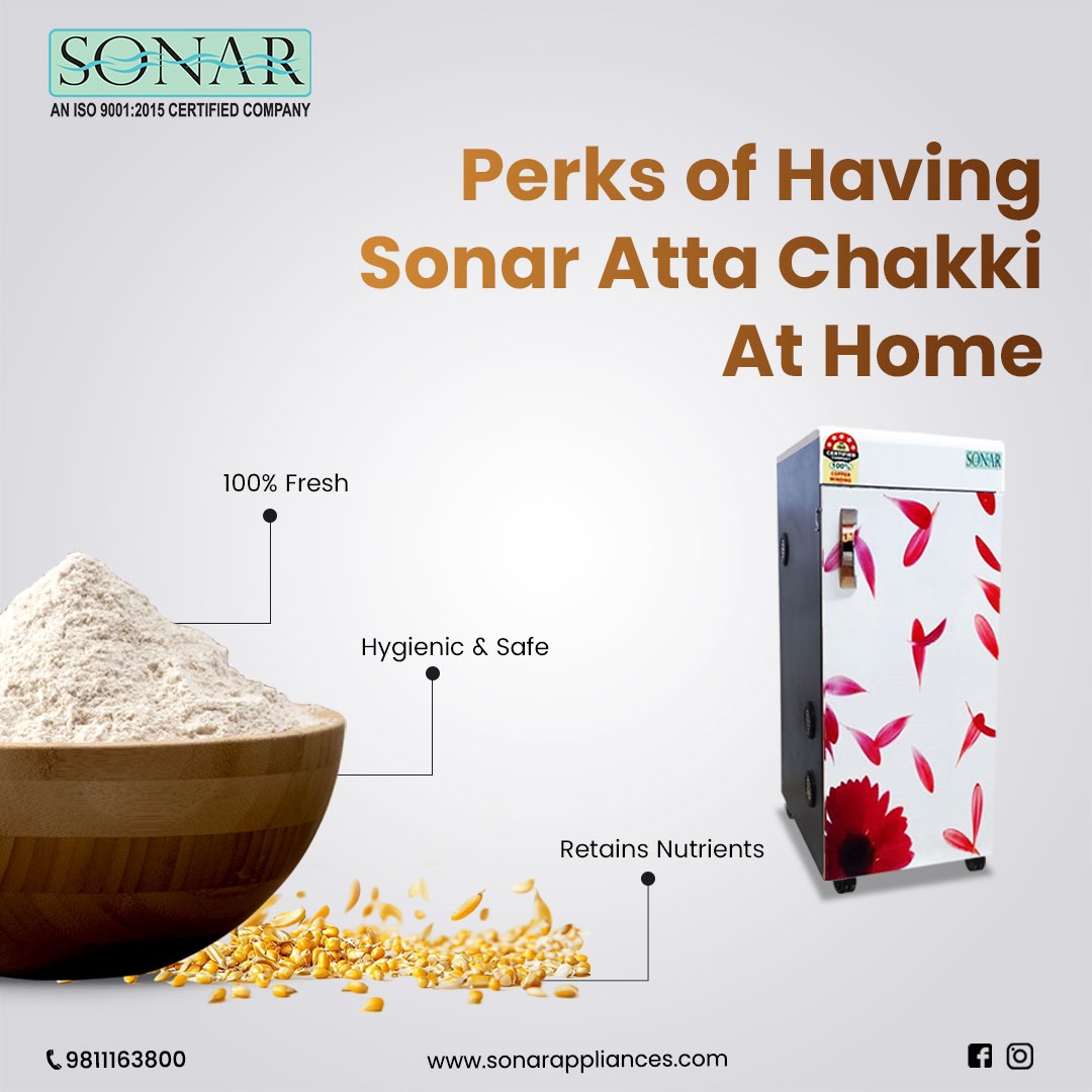 Taste the joy of freshly ground flour with Sonar Atta Chakki! 🌟 Whether it's soft rotis or delicious treats, happiness is guaranteed every time you cook! Follow us: linktr.ee/Sonarappliances 𝗖𝗮𝗹𝗹 𝘂𝘀: 9811163800, +91 9312248787 #SonarAppliances #attachakki