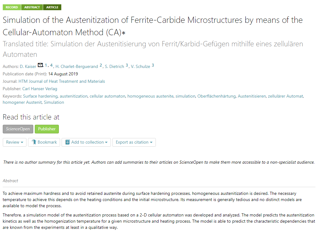 ‘Simulation of the #Austenitization of #Ferrite-#Carbide #Microstructures by means of the #Cellular-#Automaton Method (CA)’ a new @hanserliteratur article on #ScienceOpen: scienceopen.com/document?vid=1…