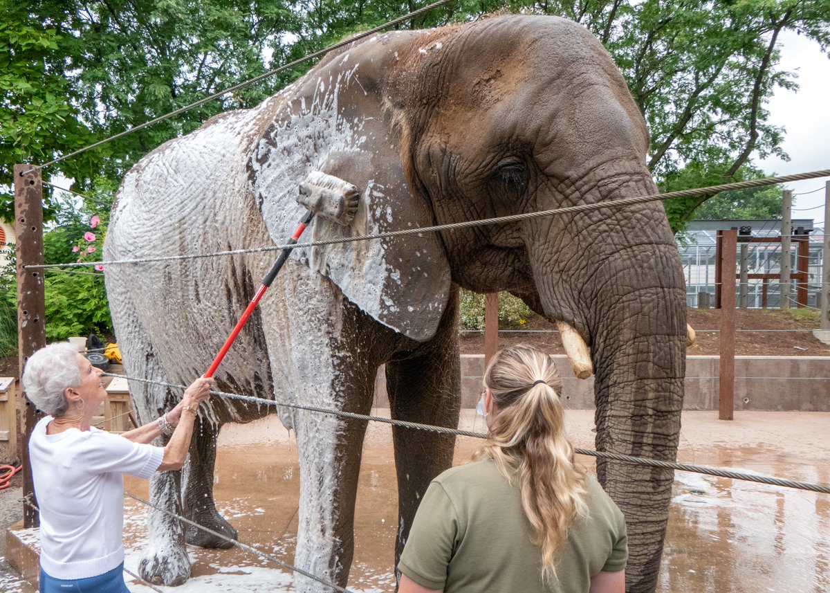 What's it like to #bathe the largest species on land? 🧼🐘 Find out for yourself through our Elephant Bathing Experience! You'll get up close & personal to scrub down & pamper one of our #pachyderms. Learn more » bit.ly/2kduPFG