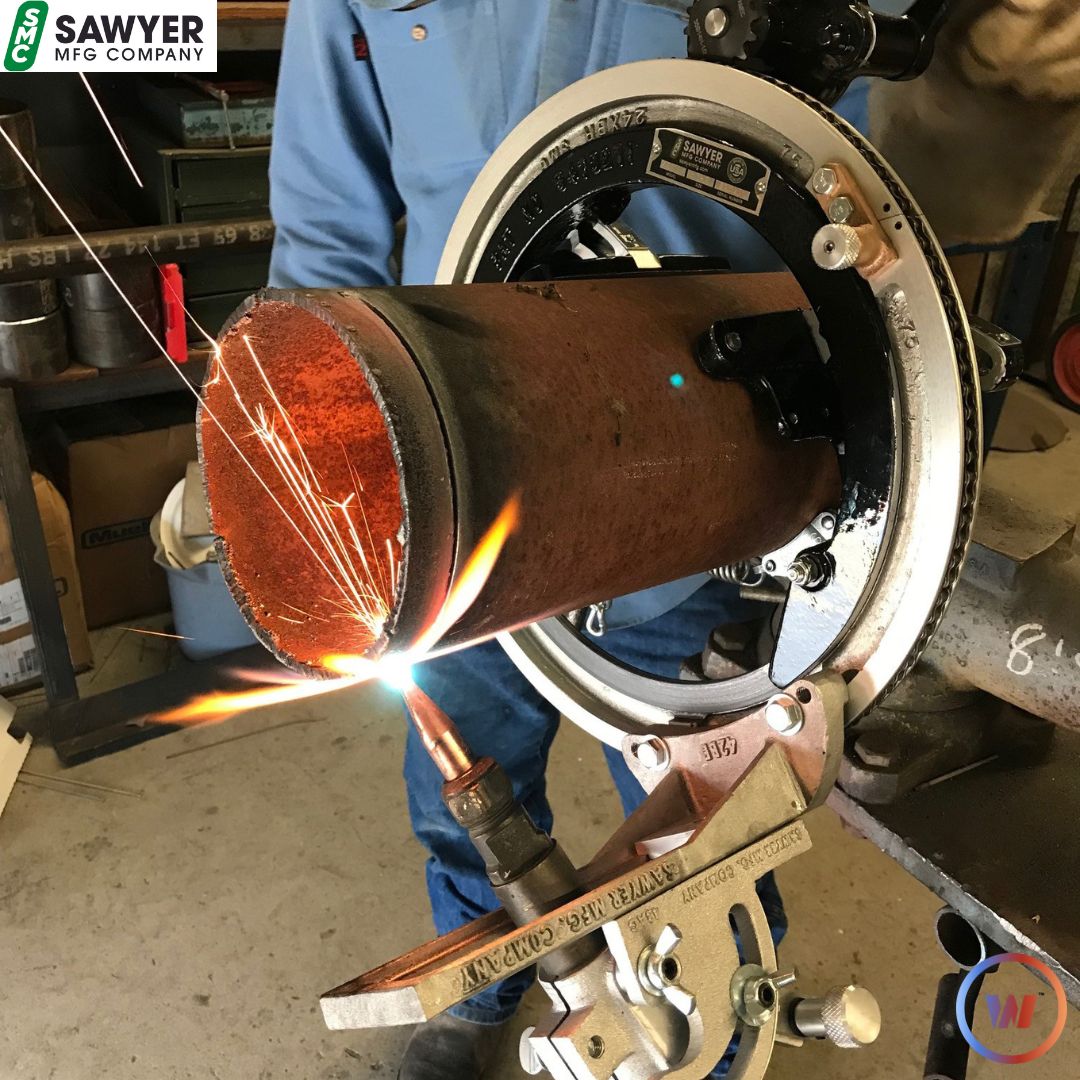 The Quick Set Beveling Machine features easily adjustable arms and a full travel ring equipped with a hinged latch for simple operation. Place anywhere on pipe! Check it out: sawyermfg.com/equipment/quic… #sawyermfg #bevelingmachine #pipebeveling