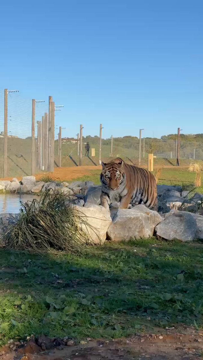 🐯 Kalinka, our beautiful Amur tiger, enjoying her reserve today 🧡✨ 📸 Credit to Ranger Mae for the stunning shot! #AmurTiger #BigCat #Wildlife #AnimalLovers
