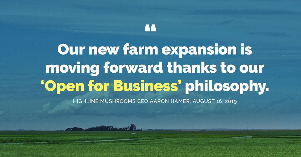 Congratulations to @highlinemushrms for your $20 million expansion investment in Alberta, & thx for your strong support for scrapping and replacing #Bill6. This vote of confidence in our economy will add to supply of local produce & create 120 new jobs. discoverairdrie.com/local/highline…