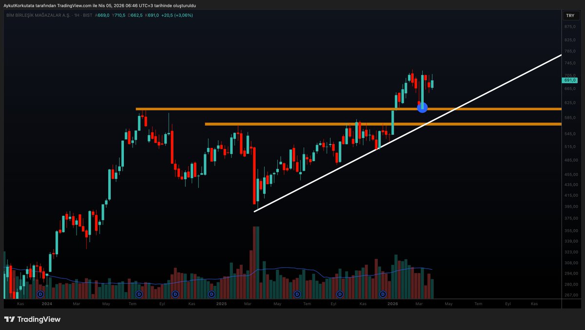 #BIMAS #bim #bimas Eski zirve üzerinde tutunmaya devam ediyor. Geçen ayki satışlardan sonra onayını da aldı. Güvenli bölge 600 TL 715 TL üzeri kapanışlar rahatlatır.
