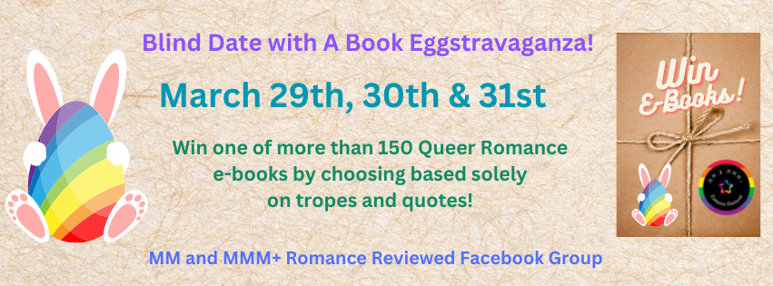 Over 150 blind date with a book giveaways are posted and ready for you to visit MM and MMM+ Romance Reviewed - there are over 100 authors! You have until Monday to enter to win! @MorganBriceBook @mmromancerevie1 #eggstravaganza #blinddatewithabook