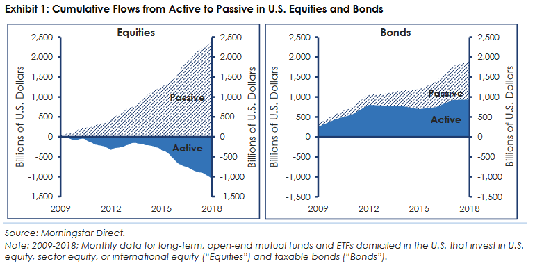 The cumulative flows from active to passive in U.S. equities and bonds have been positive only for both active and passive bond funds. via @mjmauboussin #BondFund #BondFunds #Funds #MutualFunds #Investment #Bonds #Equities #Passive