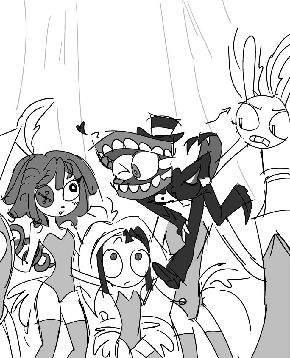 So ofc the new Caine WIP page is growing... >:} #bowtie So MAYBE i just really needed to draw Ragatha in that cabaret outfit... so maybe there's more than one of these. >>;;