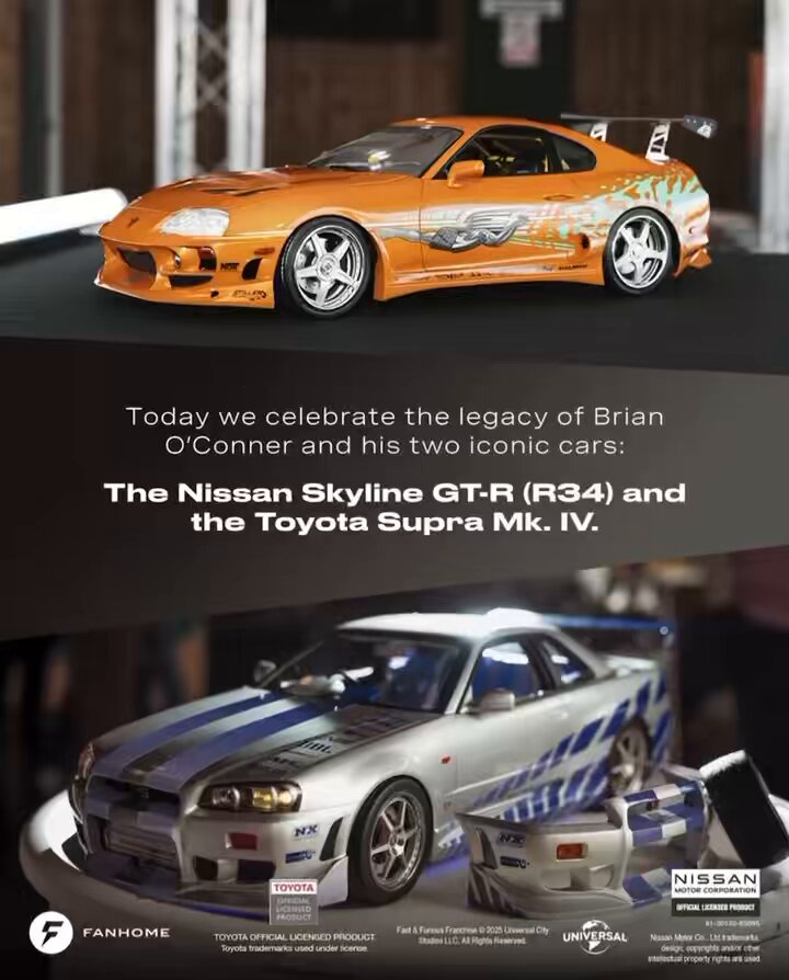Fanhome UK pay tribute to a legend of cinema: #BrianOConner played by the late great #PaulWalker And how could we talk about Brian without mentioning his most iconic cars? The #NissanSkyline and the #ToyotaSupra #Fanhome #myfancollection #hobby #buildupmodel @FanhomeUK