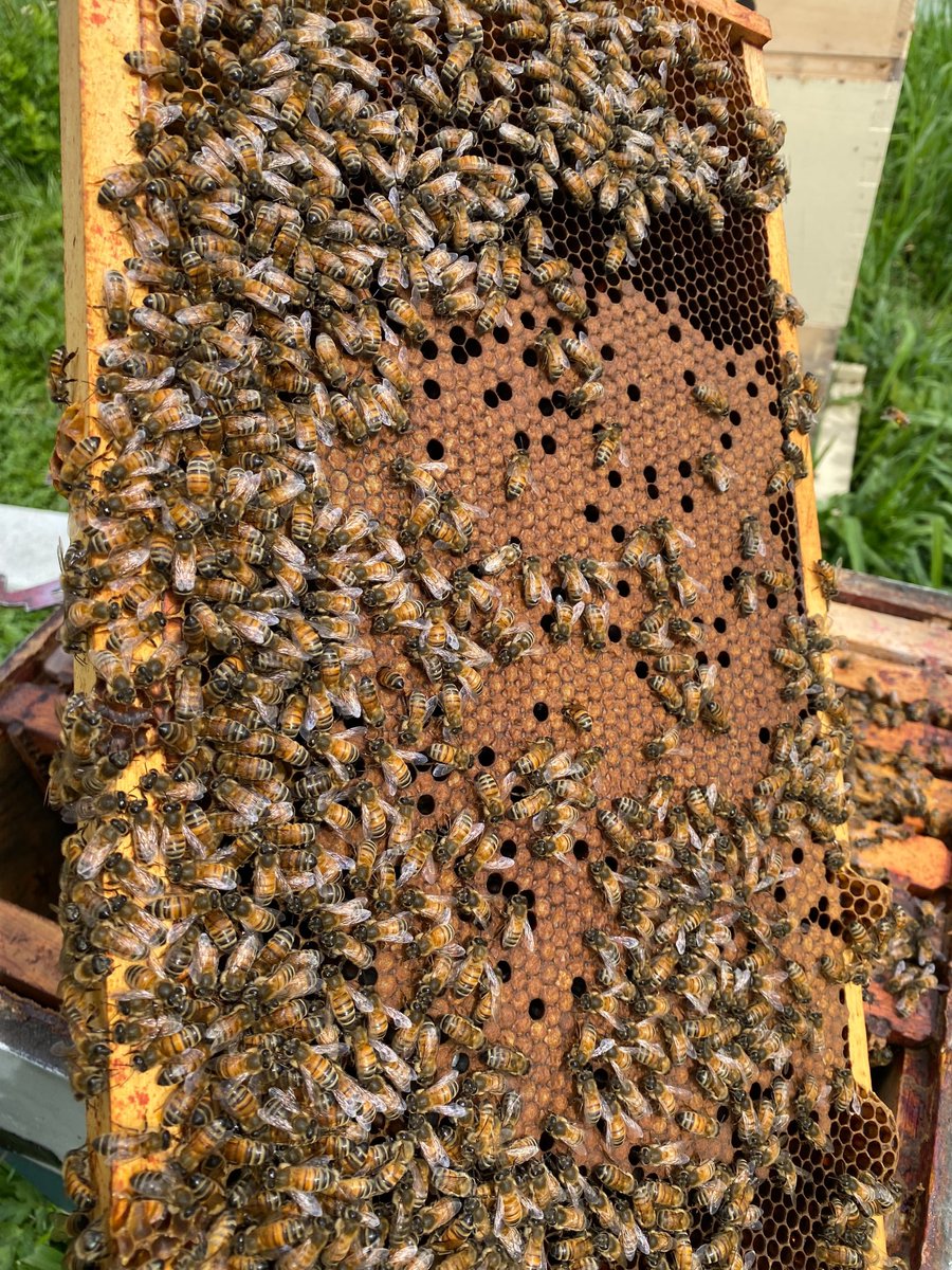 That'll do. ๐๐ผ๐โจ . . #bees #broodpattern #brood #babybees #savethebees #beepublic #honey #hive #honeybee #beekeeper #beekeeping