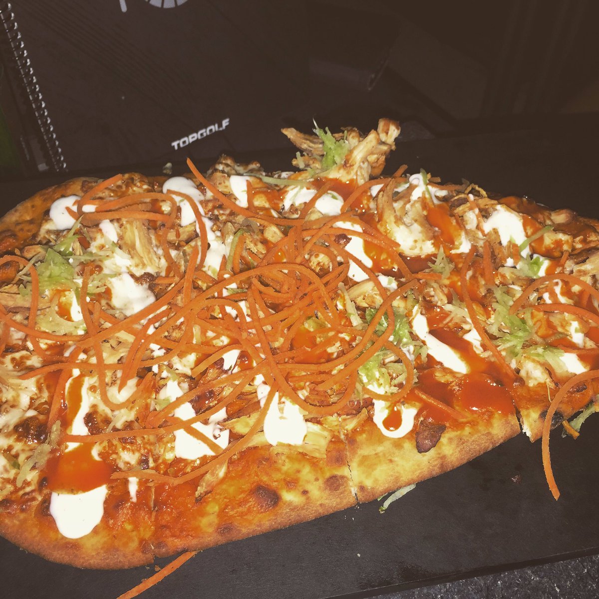 Did you hear that #Topgolfkc has a new and improved menu? Come tast our delicious #BuffaloChickenFlatBread! #Letseat