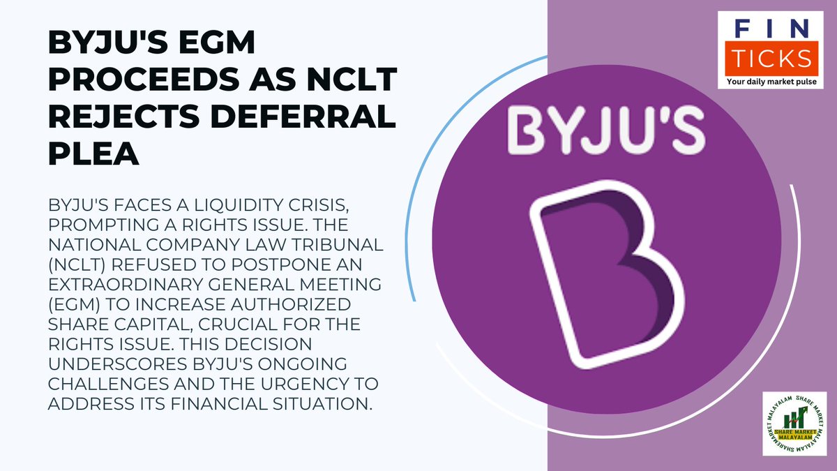 Byju's EGM Proceeds as NCLT Rejects Deferral Plea. #Byjus #byjusthelearningapp #startupnews #edtech #EGM #finticks #Nifty #kerala #india #startupindia #development #startup #stockmarketnews #sensex #business