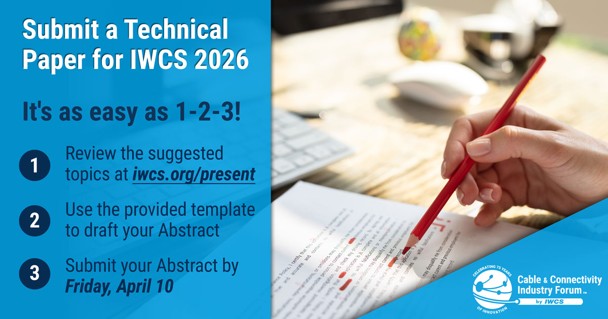 Publishing a Technical Paper through the IWCS Cable & Connectivity Industry Forum comes with several benefits. Discover suggested topics and submission details at iwcs.org/present. #IWCS2025 #CableInnovation #CableMaterials #OpticalFiber #CopperCable #Connectivity