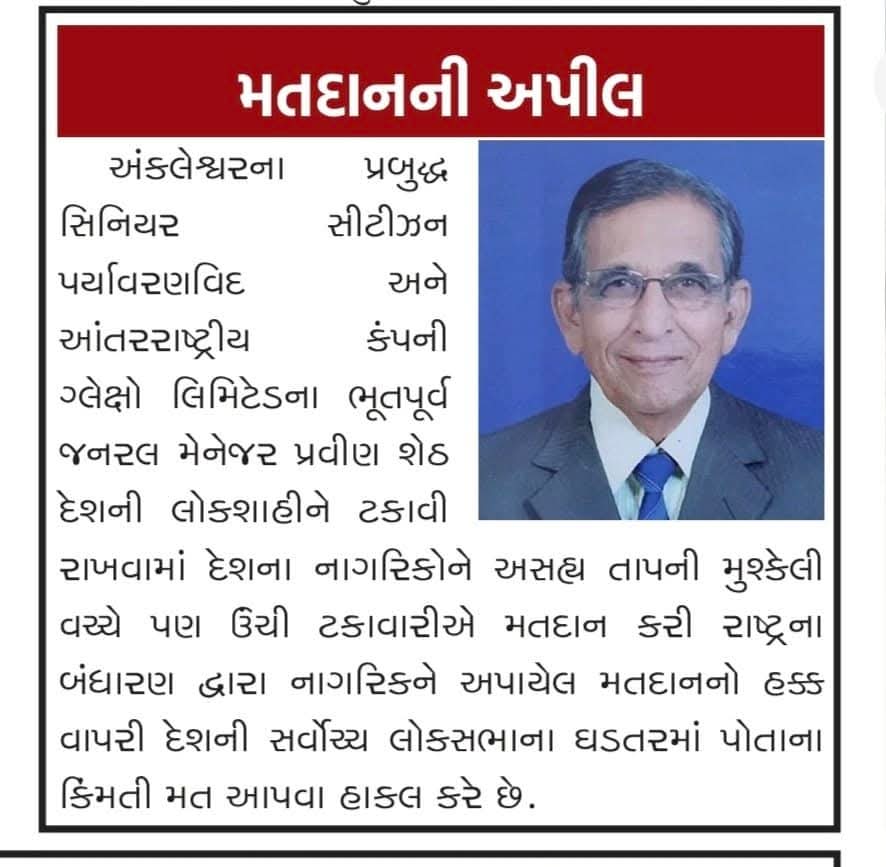 @narendramodi,, @Bhupendrapbjp @patelishwarsinh, @CollectorBharch, @AnkleshwarNP, #candidates, #voters, સ્થાનિક સ્વરાજ્યની ચુંટણી તારીખ 26+04+26 છે એટલે આપણે સહુ લોકોએ જરૂરથી વોટ આપવા જવાનું છે