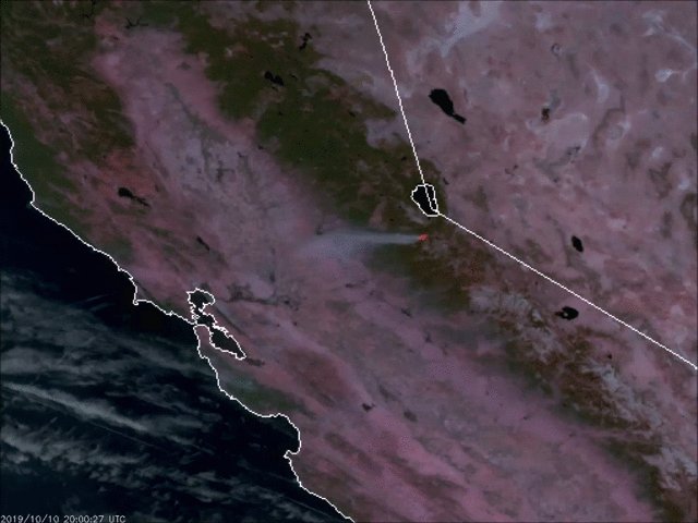 This GeoColor and Fire Temperature RGB imagery, captured by #GOESWest on 10/10/19, shows the #Caples prescribed #burn. These types of #fire treatments are intended to improve long-term #forest health, fire resiliency, and public safety. More imagery: go.usa.gov/xVtPk