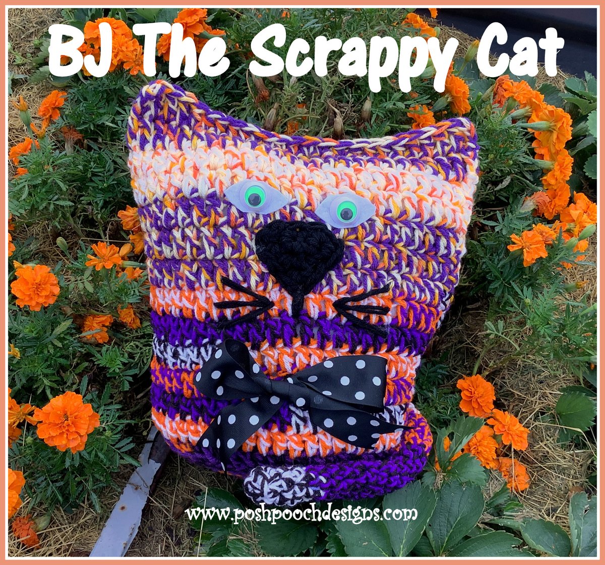 BJ The The Scrappy Cat Pillow Crochet Pattern and Video - #halloween #scrappycat #catpillow #scraphappy #crochetvideo - …shpoochdesignsdogclothes.blogspot.com/2024/09/bj-scr…